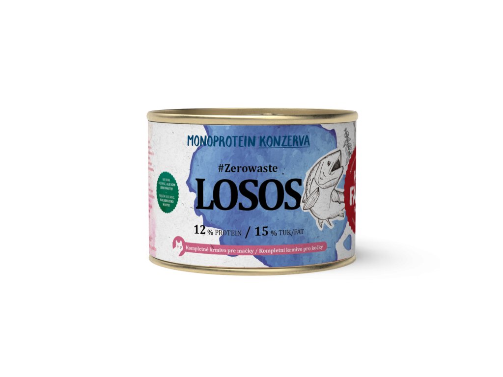 Konzerva pro kočky z lososa s vlákninou a bylinkami na trávení. Losos pochází z volného mořského odlovu. Vhodné i pro kastrované kočky. Vysoký obsah bílkovin + tuků a nízký obsah sacharidů jsou ideální pro všechny kočky, zejména ty aktivnější. Vhodné i pro koťata.