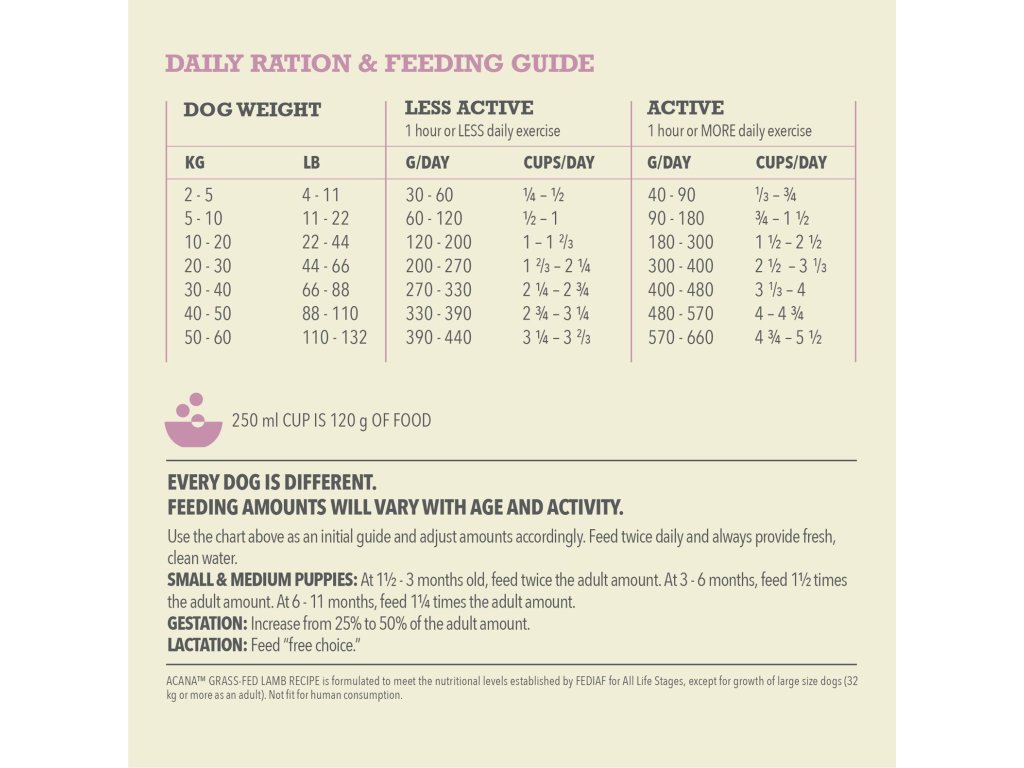 | Složení: | Syrové jehněčí (21 %), celé dehydrované jehněčí (19 %), celý zelený hrách, celá červená čočka, syrová jehněčí játra (8 %), řepkový olej, čerstvá jablka (4 %), celá cizrna, celá zelená čočka, celý žlutý hrách, čočková vláknina, hrachový škrob, slunečnicový olej, řasy (zdroj EPA a DHA), syrové jehněčí dršťky (1 %), syrové jehněčí ledvinky (1 %), celá čerstvá tykev muškátová, celá čerstvá dýně, sušená řasa, sůl, sušený kořen čekanky, celé brusinky, celé borůvky, kurkuma, ostropestřec, kořen lopuchu, levandule, kořen proskurníku, šípky. |