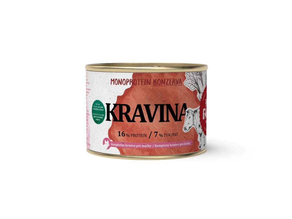 Konzerva pro kočky z hovězího masa s vlákninou a bylinkami na trávení. Maso pochází z farem v ČR. Vhodné i pro kastrované kočky. Vysoký obsah bílkovin + tuků a nízký obsah sacharidů jsou ideální pro všechny kočky, zejména ty aktivnější.