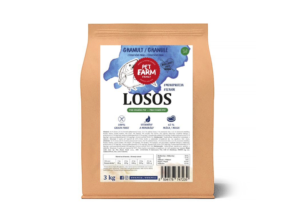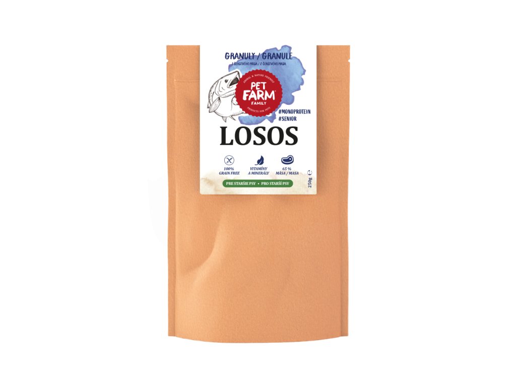 Kompletní krmivo pro psy. Monoprotein granule z lososa. Losos je velmi bohatý na esenciální aminokyseliny a je výborný zdroj vitamínů a minerálů, které pomáhají celkovému zdraví a pohodě.
