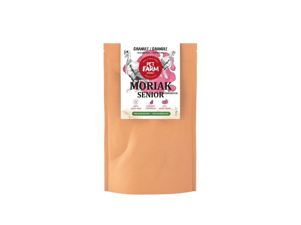 Kompletní krmivo pro psy. Granule z krůtího masa z free-range farem a vepřového masa. Vyvážený poměr bílkovin, sacharidů a tuků pro dostatek energie a prospívání. Přirozeně se vyskytující kolagen pomáhá udržovat zdravé klouby a kůži. Vybraná směs ovoce a zeleniny podporuje trávení a udržení zdravé hmotnosti a čisté svalové hmoty u starších psů.