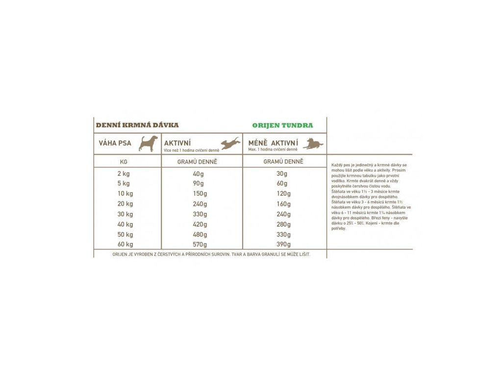 ORIJEN TUNDRA je bezkonkurenční díky svému obsahu kozy, zvěřiny, ryb, kachny, jehněčího, vepřového a skopového. Všechny tyto suroviny jsou nám dodávány čerstvé nebo syrové v bohatě výživném podílu Celé kořisti, což snižuje potřebu přidávat umělé doplňky do našich krmiv. Biologicky vhodná krmiva ORIJEN jsou připravována v našich vítězně oceňovaných kuchyních NorthStar®.