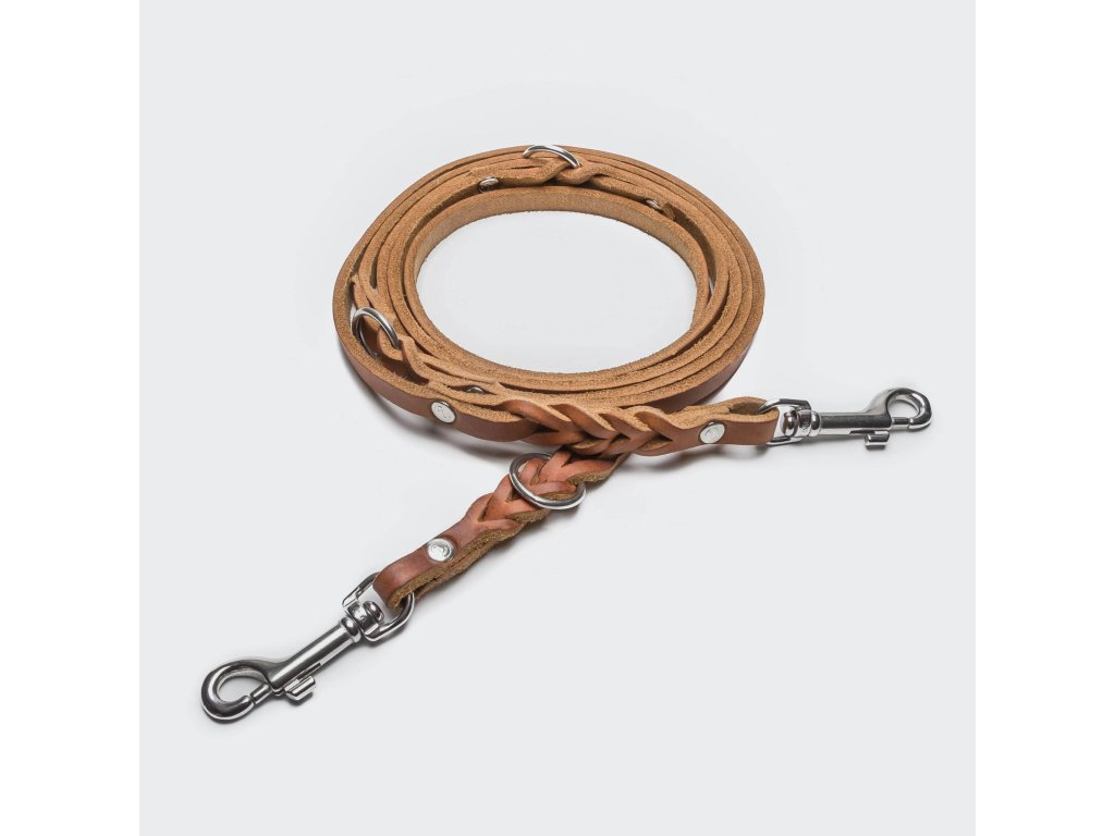 Odolná, stylová a kvalitní vodítka jsou vyrobena ručně z broušené hovězí kůže (nubuk) s mosaznou přezkou.
